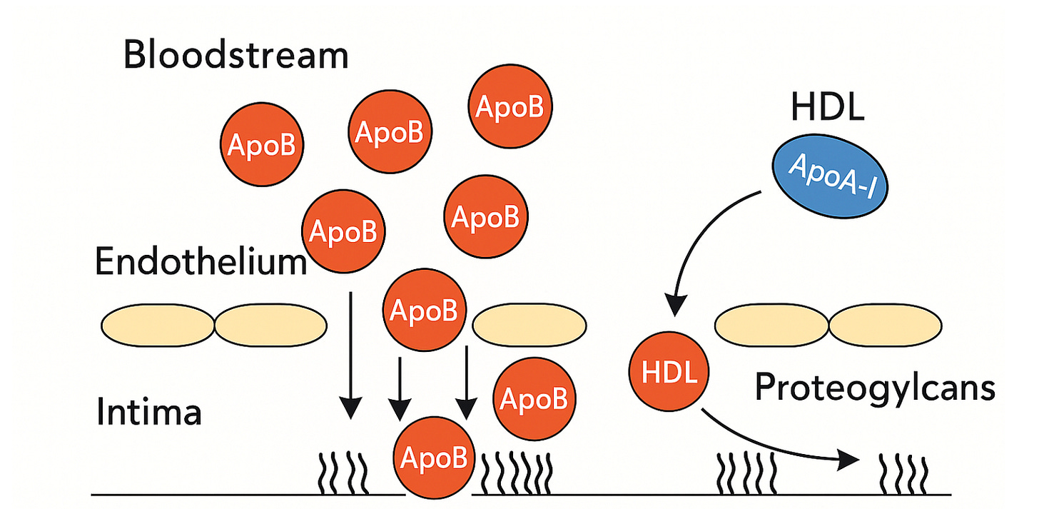 What crosses that threshold are not blobs of dietary fat or grease from last night’s dinner — as old headlines once suggested — but tiny, highly organized couriers: cholesterol-rich lipoproteins carrying a single molecular signature called ApoB.