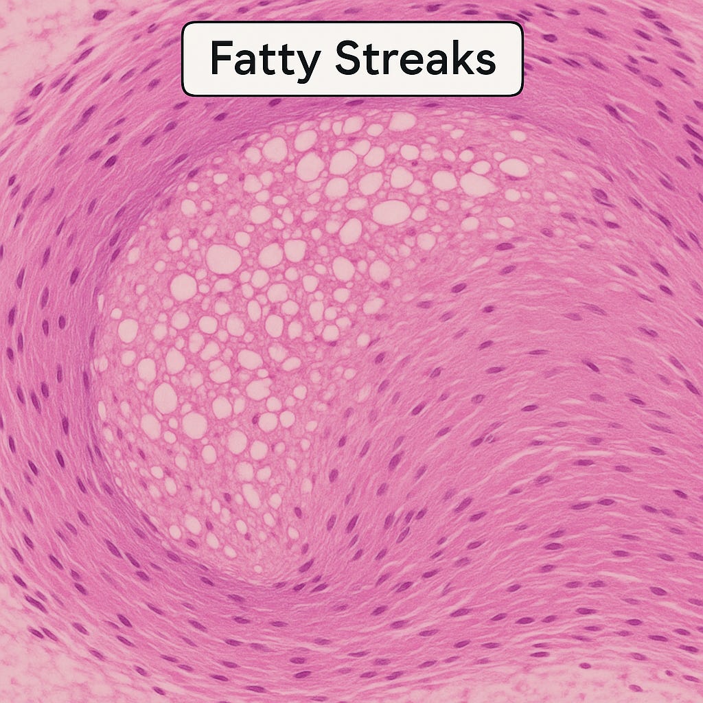 As foam cells cluster, they create the first visible footprint of atherosclerosis: fatty streaks.
